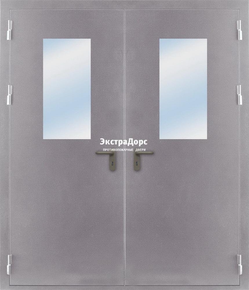 Двухстворчатая огнестойкая дверь EI 60 ДО-02-EI-30 двупольная остеклённая стальная с МДФ и антипаниками