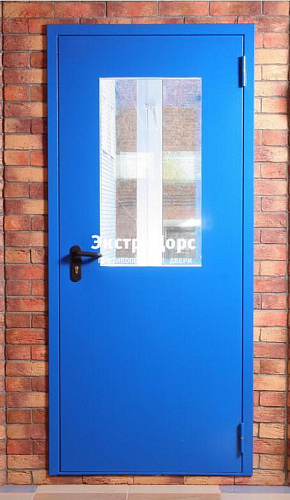 Противопожарная дверь голубая дымогазонепроницаемая с остеклением