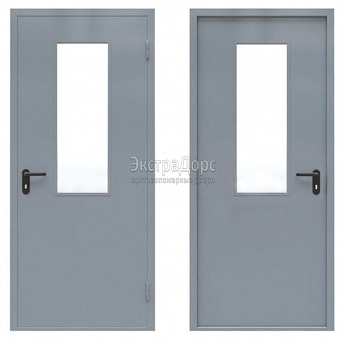 Дверь противопожарная металлическая однопольная EI 30 газодымонепроницаемая со стеклом