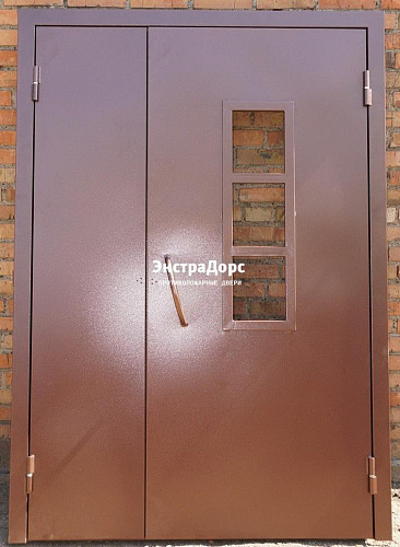 Противопожарная дверь двупольная анти-дым со стеклом, порошковая покраска