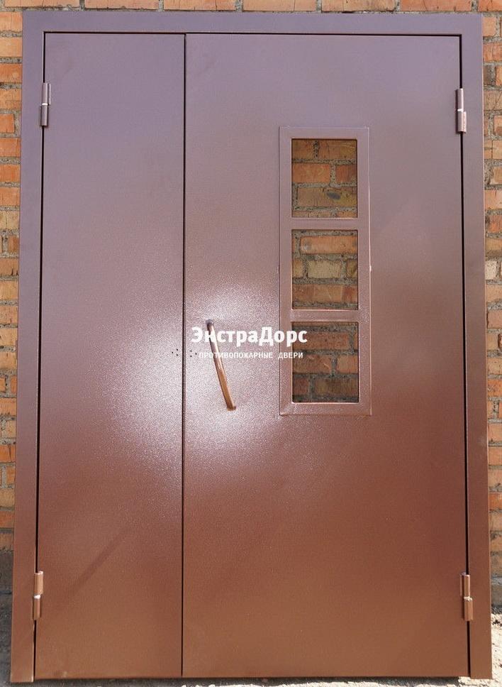 Противопожарная дверь двупольная анти-дым со стеклом, порошковая покраска в Сочи