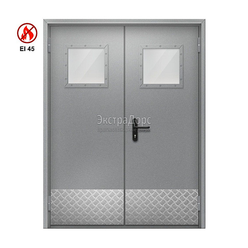 Двупольная огнестойкая дверь EI 45 ДО-02-EI45 ДП125 двупольная остекленная