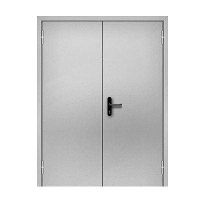 Металлическая противопожарная дверь ДМП-01-30 двупольная серая с простой ручкой