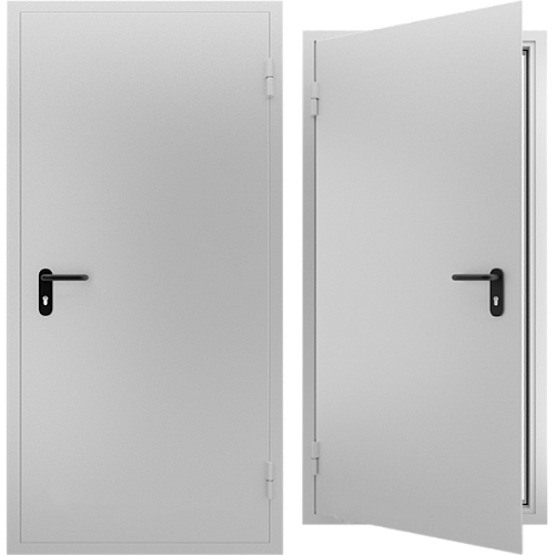 Распашная дверь противопожарная однопольная с порошковым напылением серая