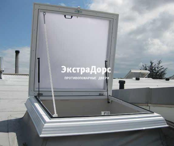 Черный противопожарный люк на кровлю с прозрачной крышкой